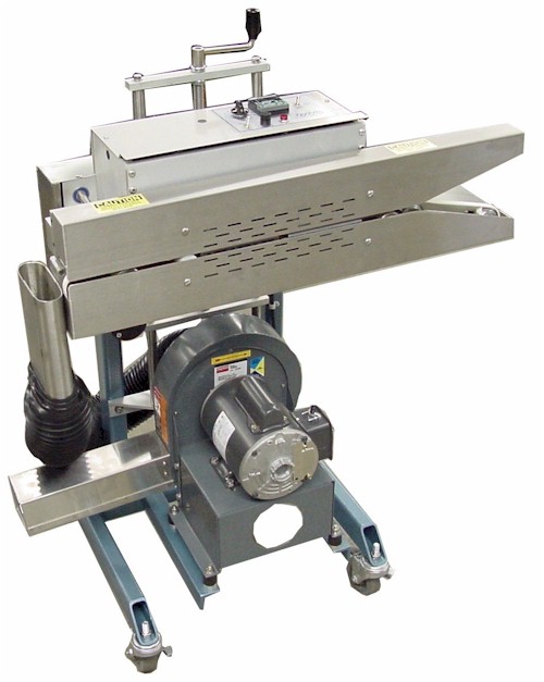 - Mounted horizontally with crank adjustable height control stand, easily mates with your existing conveyor. Permanent magnet DC variable speed gearmotor allows for sealer/conveyor synchronization.