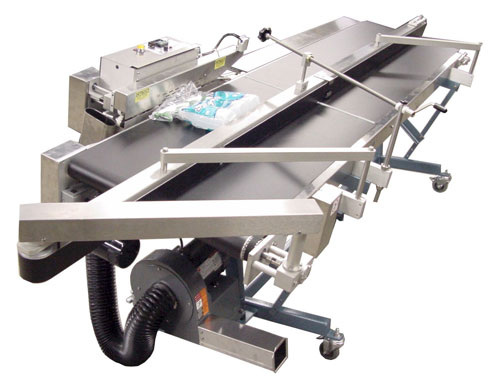 - Adjustable all-welded steel or optional Stainless Steel stand for tilting the Conveyorized Sealing System assuring uniform packages.