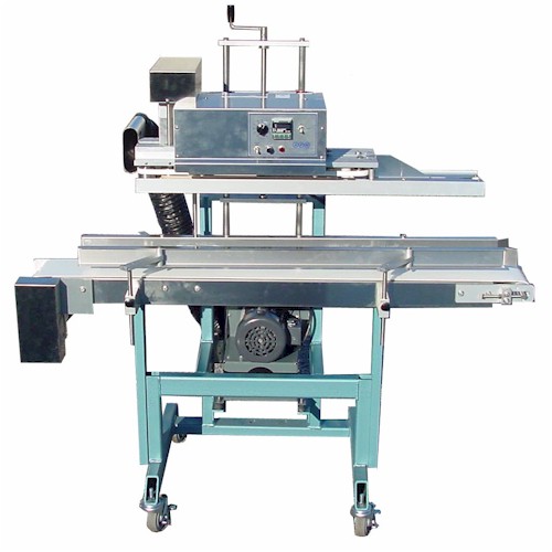 - System available mounted on 4’ high adjustable floor stand, may complement your existing conveying equipment by positioning the Sealing System over it and adjusting the variable speed drive to match. Model VBS-1/8TX is available upon request.