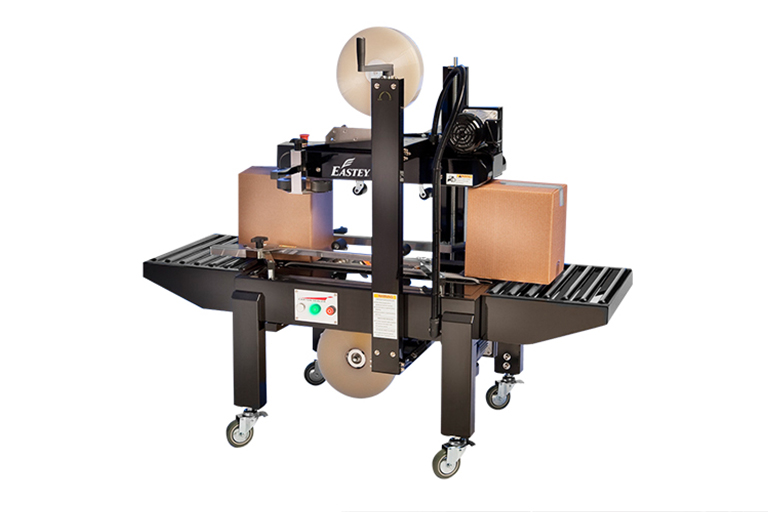 TB-2 offers fast and easy case changes and flexibility for boxes 5” in length and greater. Adjustments can be made on the fly with easy hand tighten knobs and cranks. TB-2 utilizes Easy-Taper Quick-Load top and bottom tape cartridges and will seal boxes as narrow as 6.0” wide and as low as 4.5” tall.