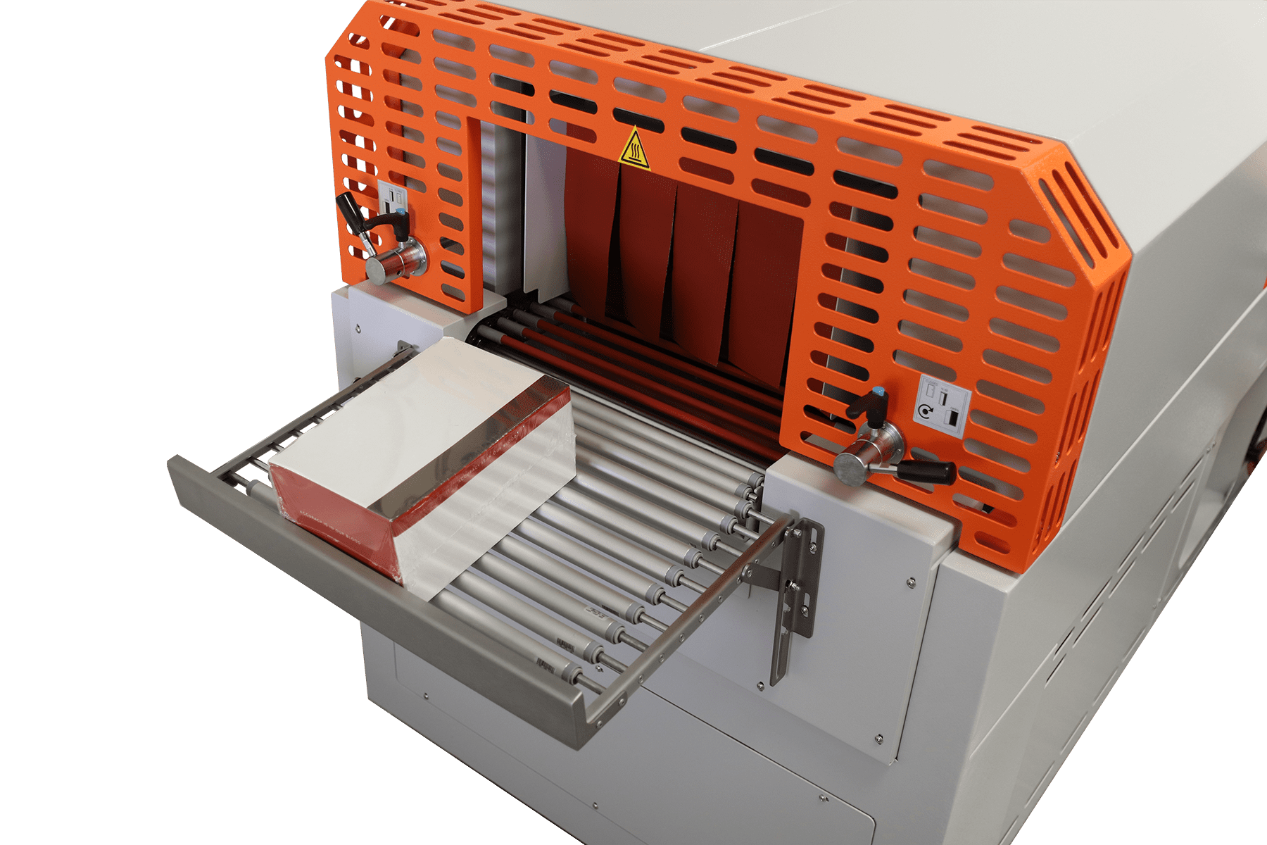 - Tunnel conveyor with variable speed and live rollers (1.25” spacing) for a better shrink result
