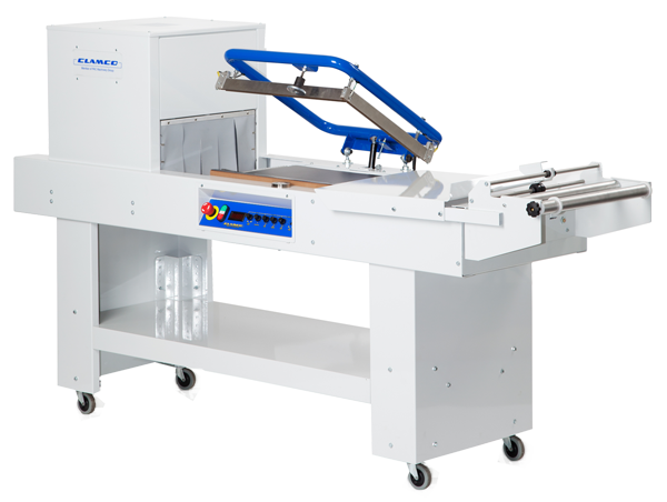 Clamco’s L-sealer/tunnel combination system includes such standard features as unitized package tray and film cradle with pinwheel perforator, the largest shrink tunnel in its class, and 11-gauge steel construction throughout.