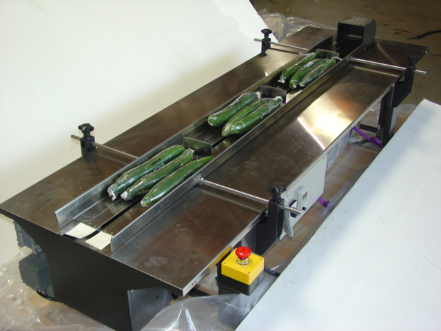 6 FT. Long Flighted In-Feed Conveyor for wide products, uses wide pusher