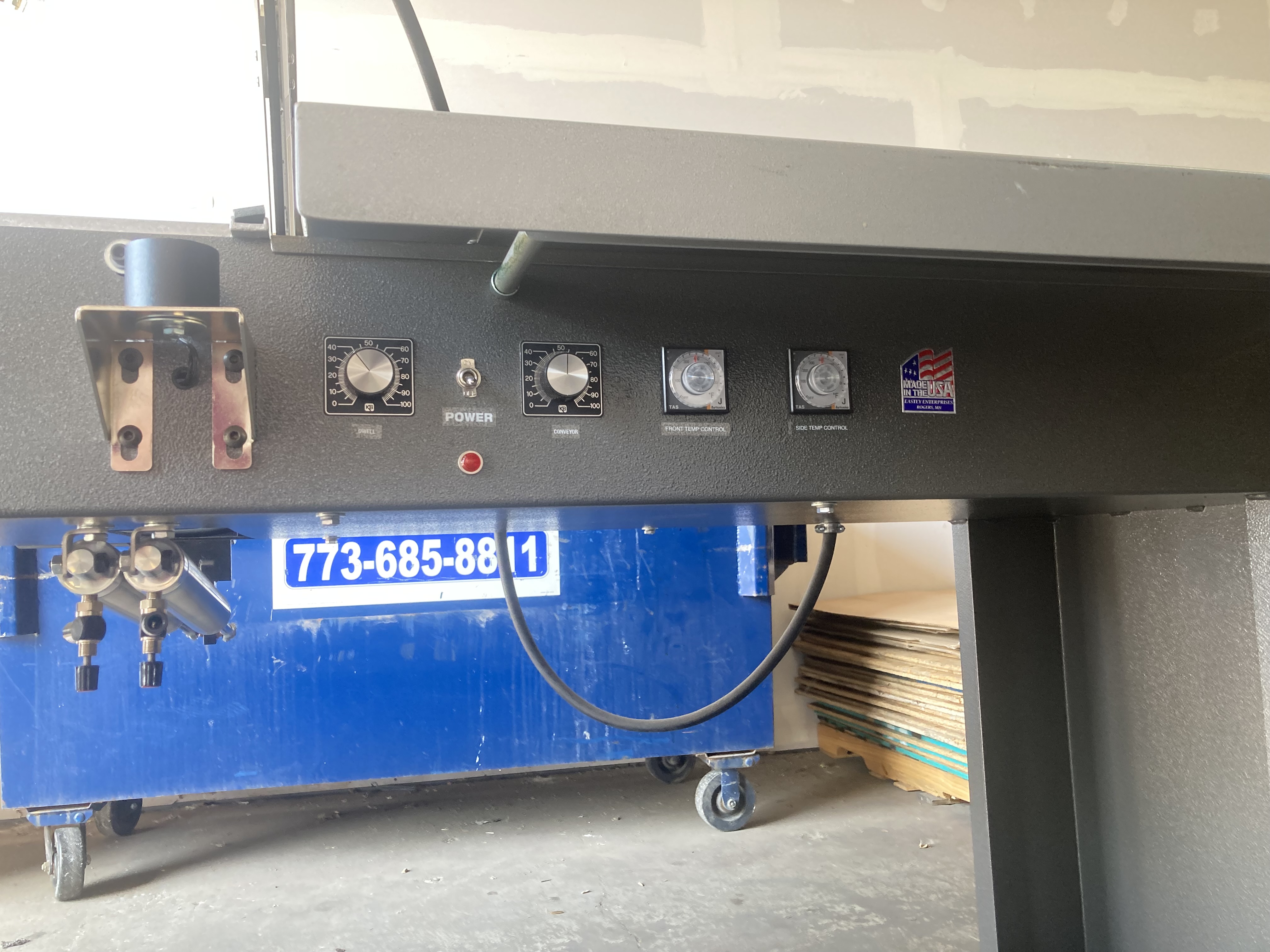 USED SEALER with Hot Knife seal jaws , magnet hold down, stainless steel exit conveyor.