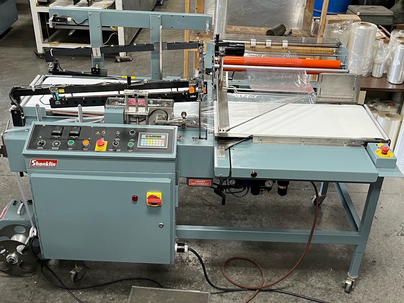 is conveyed away to a shrink tunnel while the infeed conveyor