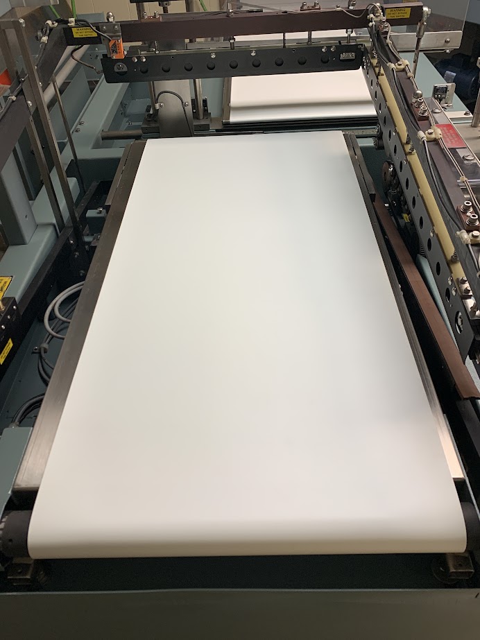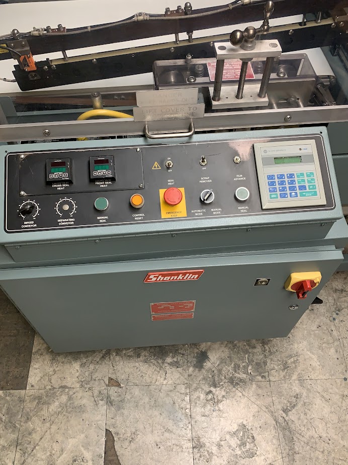 Shanklin A27 A94134 - Has been cleaned and gone over completely. The seal bars have been recoated. The infeed belts and Extending infeed conveyor belts including drive rollers are new. The pneumatics have been rebuilt. This machine is ready for production.