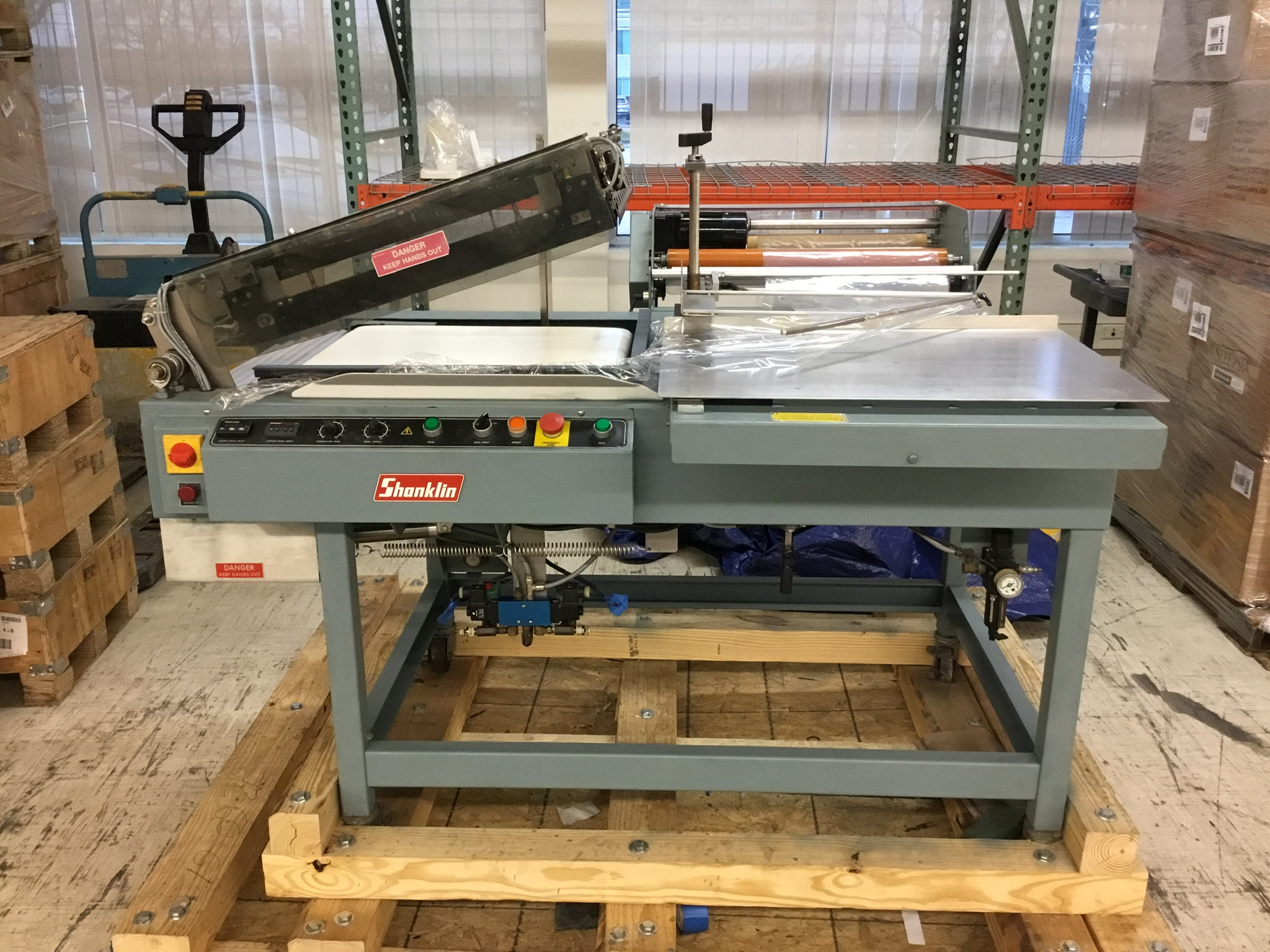 Shanklin Model S26, High Production Air Operated L-Sealer, runs on 115volts, rates as much as 15-20 per minute. Product delivery and operator dependent