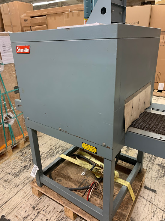 Shanklin Tunnel T6XL, 230 Volts, single Phase, 35 AMPS. Tunnel Opening is 6"H x 18" W x 30"L. Overall Dimensions 58"L x 35"W x 70" Tall ( Top Blower Motor). 11"W Stainless Steel Mesh Conveyor Belt.