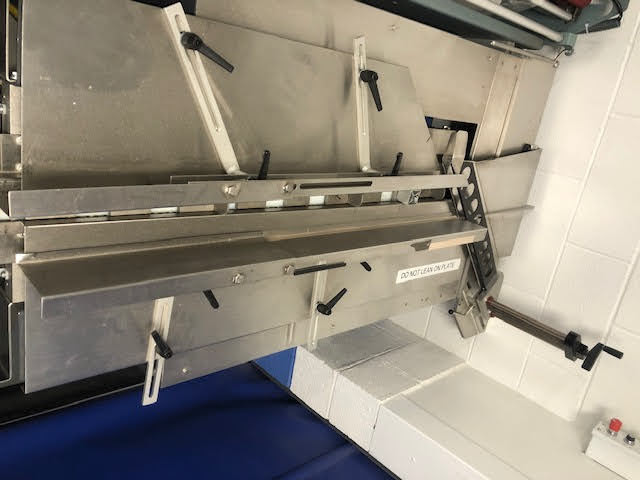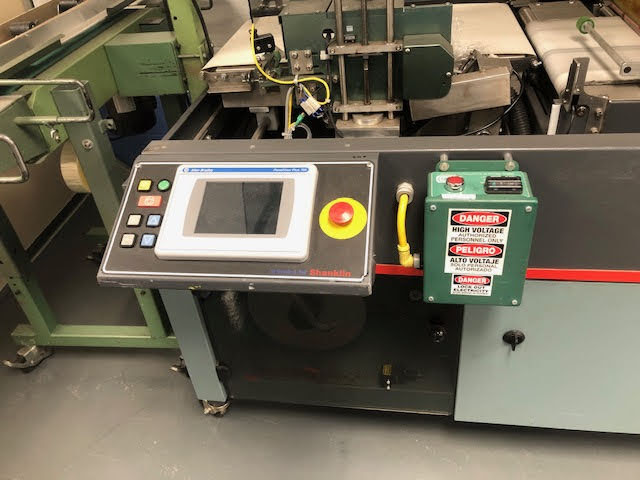 Shanklin OmniS Servo machine capable of speeds of 75 ft per minute. This machine has Shuttleworth paper infeed feeding Shanklin's Flighted infeed. Side sealer is equipped with aftermarket Green Machine Side Sealer. 23" wide seal bar and up to 10"Tall