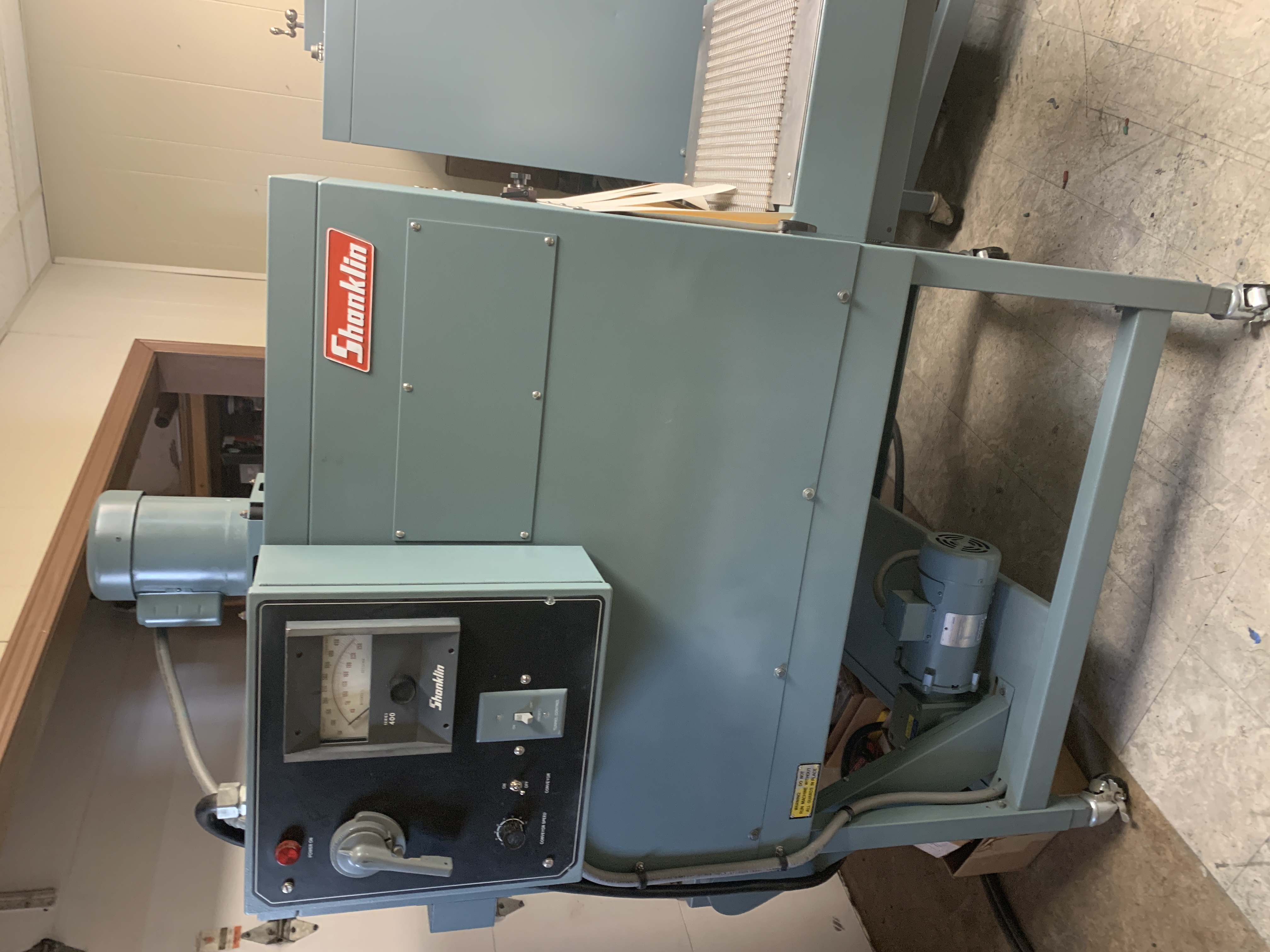 This Shanklin T7H Tunnel has been overhauled! New conveyor belt, drive and idler drums. The Tunnel has been recalibrated with heaters checked out. The Blower has been removed and blower wheel cleaned. The inside of tunnel including screens also has been cleaned. The unit has been touch up painted and looks almost new. Please call for pricing. Perfect companion for A26/A27 Auto Shrink Line